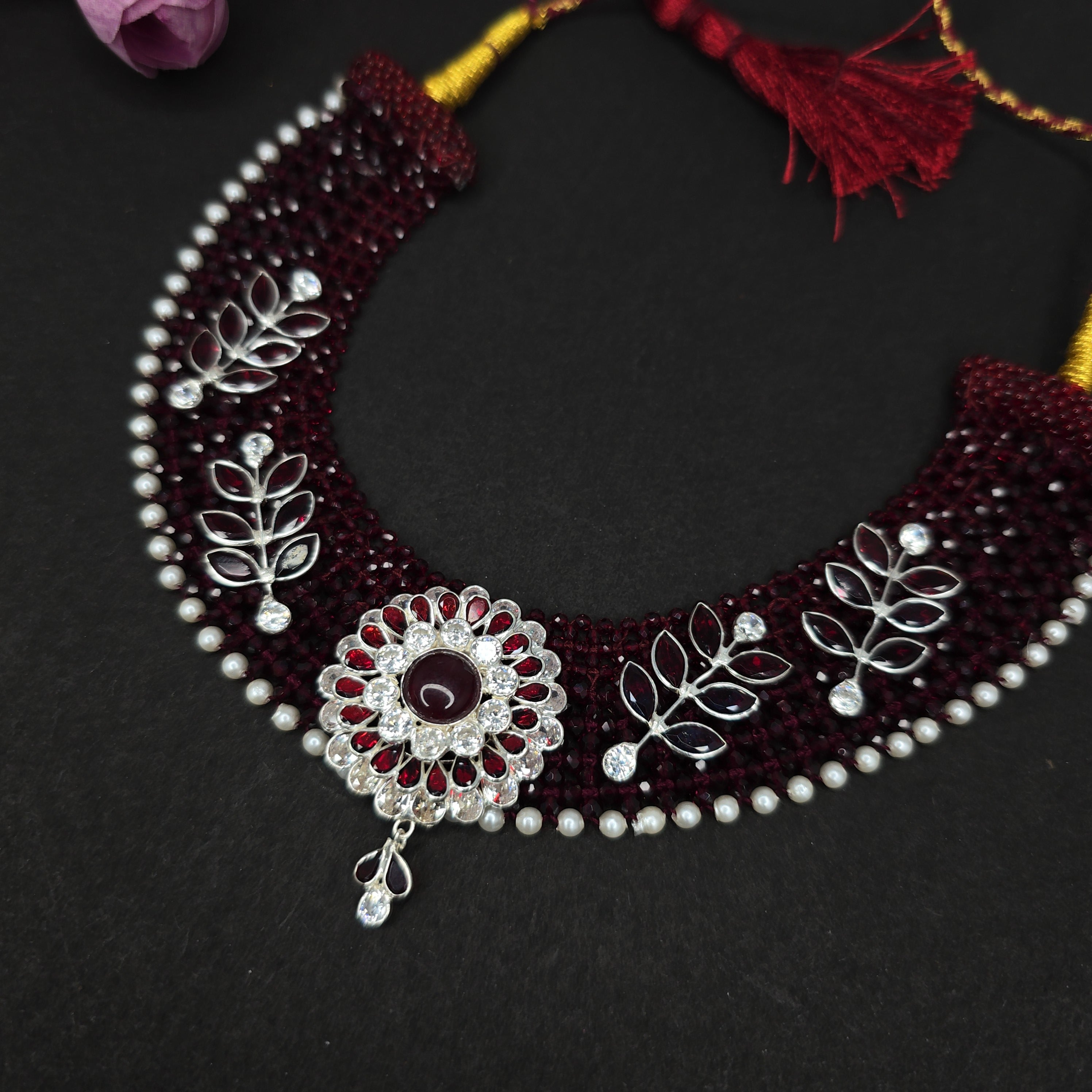 Elevate your traditional attire with this 5-piece Rajasthani silver beaded Kanthi necklace. Expertly crafted, it complements both suits and sarees, adding a refined touch of cultural elegance. The intricate silver beads showcase authentic Rajasthani artistry, making it a versatile accessory for festive and formal occasions.